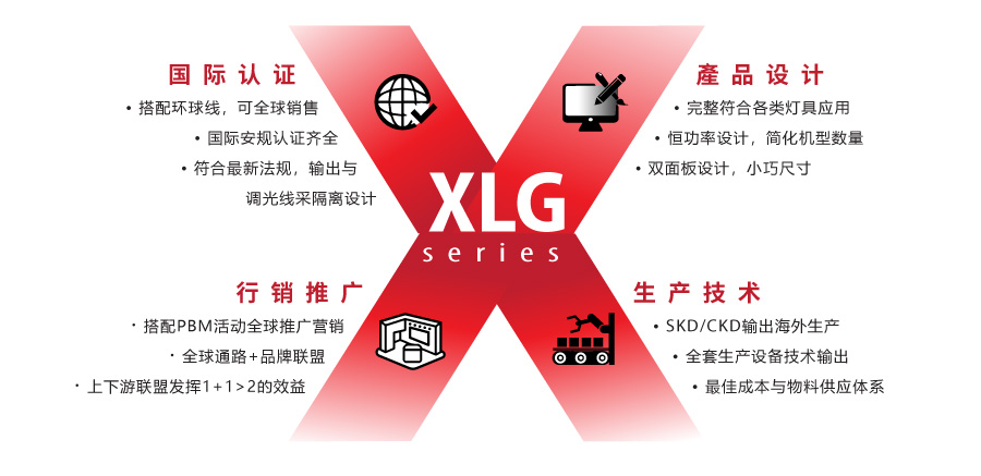 明緯除了持續秉持開(kāi)發(fā)優(yōu)化性?xún)r(jià)比的標準電源來(lái)服務(wù)客戶(hù)外,更于今年結合供貨商及Powered By MEAN WELL(PBM)客戶(hù)來(lái)共同營(yíng)銷(xiāo)產(chǎn)品,期許透過(guò)彼此的優(yōu)勢,一起提升競爭力,并將彼此的產(chǎn)品共同推廣到全世界。目前XLG全系列已結合Powered By MEAN WELL (PBM)聯(lián)合營(yíng)銷(xiāo)活動(dòng)進(jìn)行全球推廣。XLG系列不僅在功能上具有規格優(yōu)勢,更是結合明緯與客戶(hù)間信賴(lài)合作關(guān)系的營(yíng)銷(xiāo)代表作,以創(chuàng )新?tīng)I銷(xiāo)模式,將產(chǎn)品以SKD/CKD模式出口到海外工廠(chǎng)生產(chǎn),落實(shí)與擴大當地化的服務(wù),詳情可參見(jiàn)LED創(chuàng )新系列營(yíng)銷(xiāo)活動(dòng)。