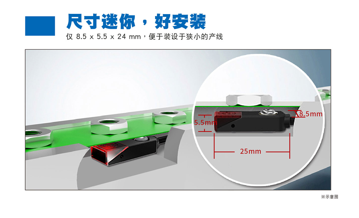 隨著(zhù)工業(yè)4.0的潮流,工業(yè)自動(dòng)化已是必然趨勢,近接傳感器是自動(dòng)化設備不可或缺重要組件之一,也是最常見(jiàn)的款式,常用于取代限位開(kāi)關(guān)等接觸式的檢測方式,凡是不接觸檢測目標物而進(jìn)行檢測的傳感器,通稱(chēng)為近接傳感器,專(zhuān)用于檢測金屬(例如:鐵、鋁、銅、…等金屬)物體作動(dòng),將檢測目標物的移動(dòng)信息或存在信息轉換成電性訊號。